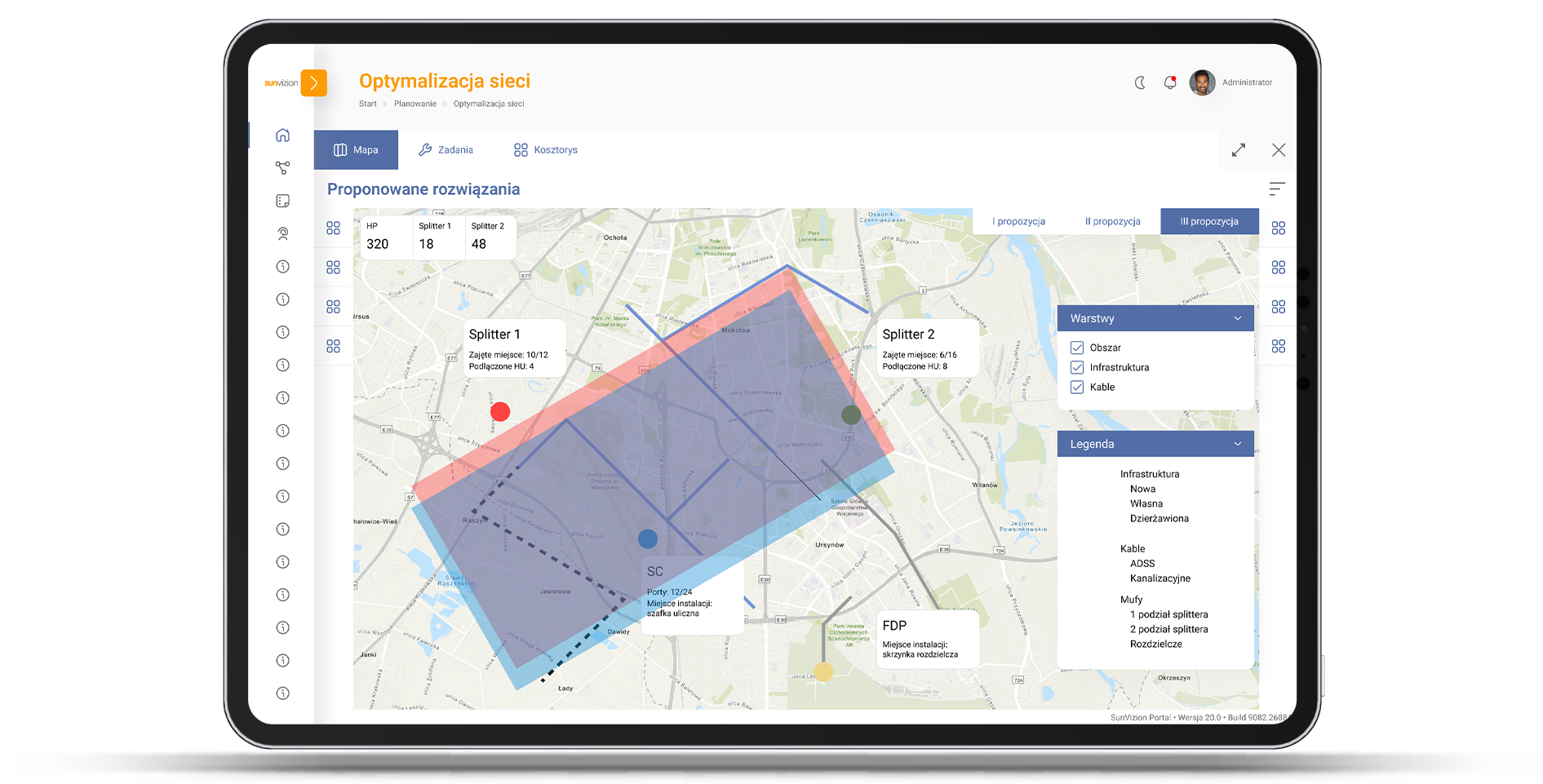 Для оптоволоконных и медных сетей SunVizion управляет топологией и использованием ресурсов на уровне, необходимом для реальной эксплуатации: