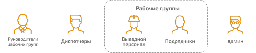 - Выездной персонал и подрядчики – выполнение полученных заданий, ведение записей и обновление данных о завершенных работах, обновление статуса работ (например, подтверждение приемки наряда на работу или ее завершения).